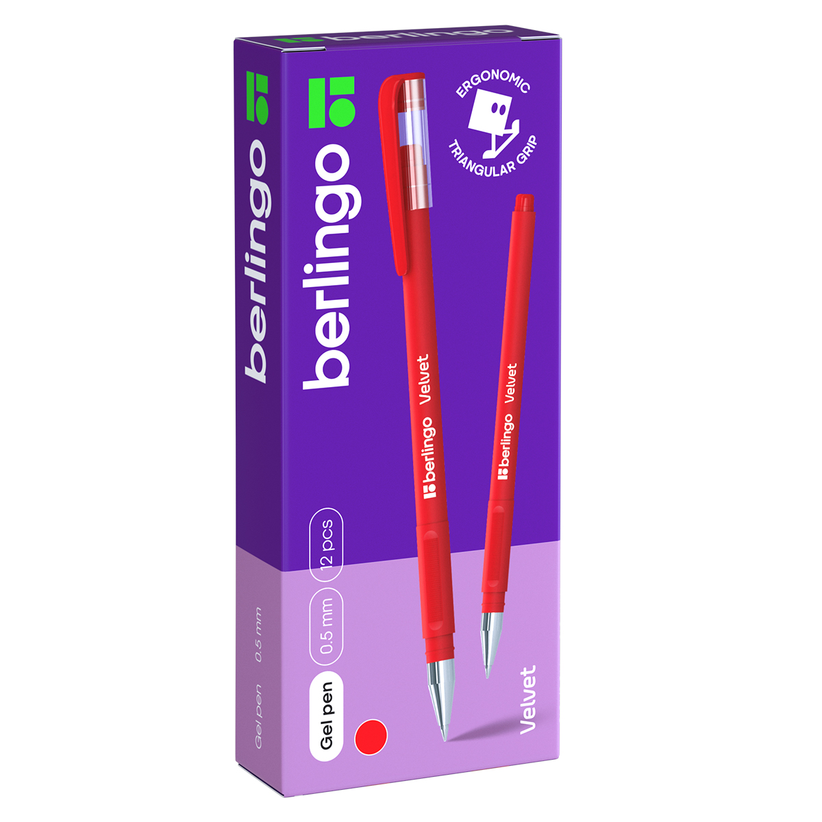 Ручка гелевая Berlingo Velvet с колпачком и клипом станет стильным канцелярским аксессуаром и надежным помощником для работы или учебы. Цвет чернил – красный. Диаметр пишущего узла составляет 0,5 мм, благодаря чему получается тонкая, аккуратная линия. Толщина линии письма 0,4 мм, а длина линии письма – 400 м. Благодаря технологии soft-touch приятное на ощупь бархатистое покрытие корпуса создает дополнительный комфорт при письме. Цвет корпуса соответствует цвету чернил. Эргономичная трёхгранная зона захвата обеспечивает удобство при использовании ручки. Рифление в зоне захвата препятствует скольжению пальцев. Ручки упакованы в картонную коробку по 12 штук.