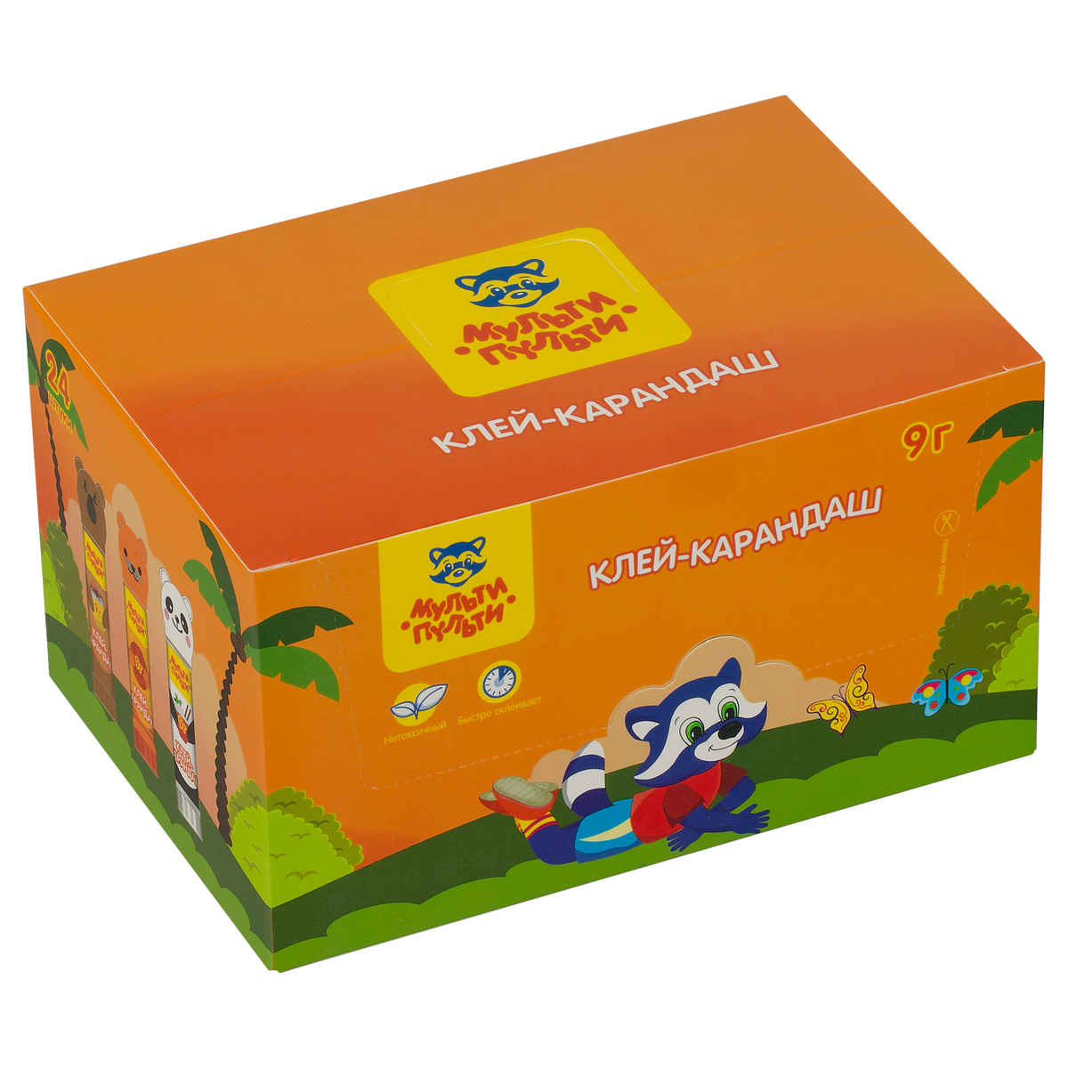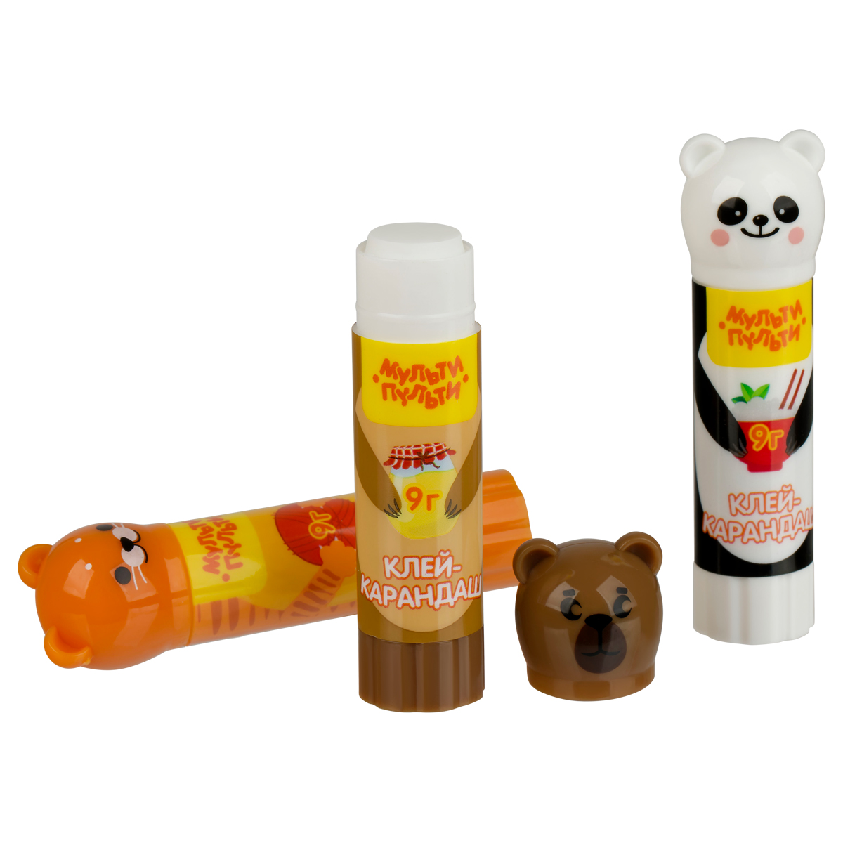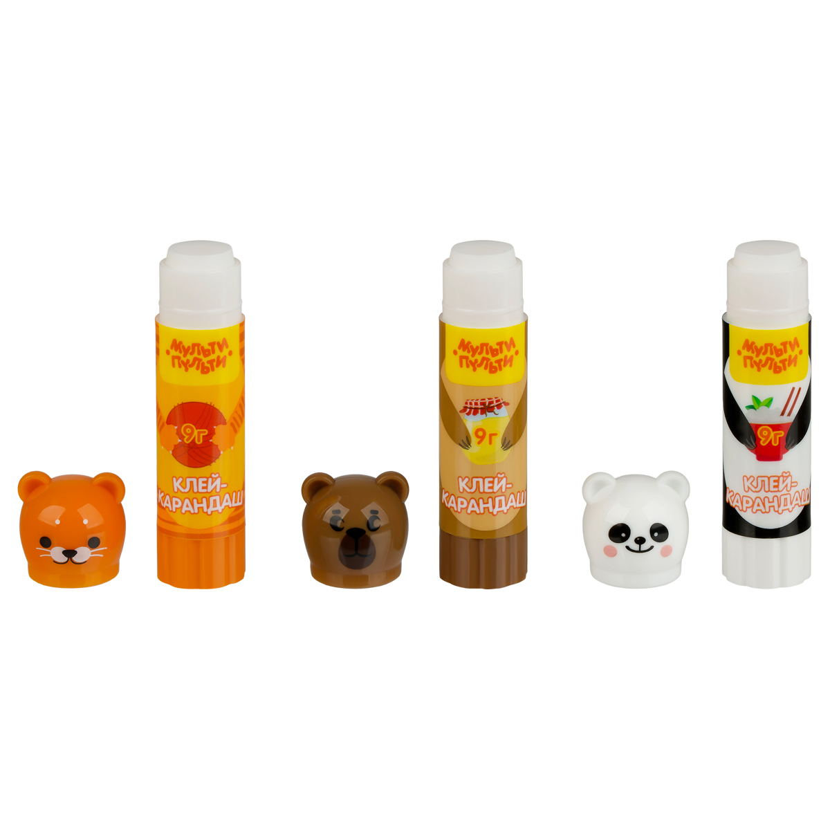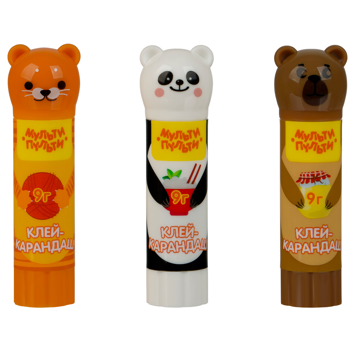Клей-карандаш Мульти-Пульти "Зверята: Кот, Мишка, Панда", 09г, колпачок в форме животного, ПВП GS_33742